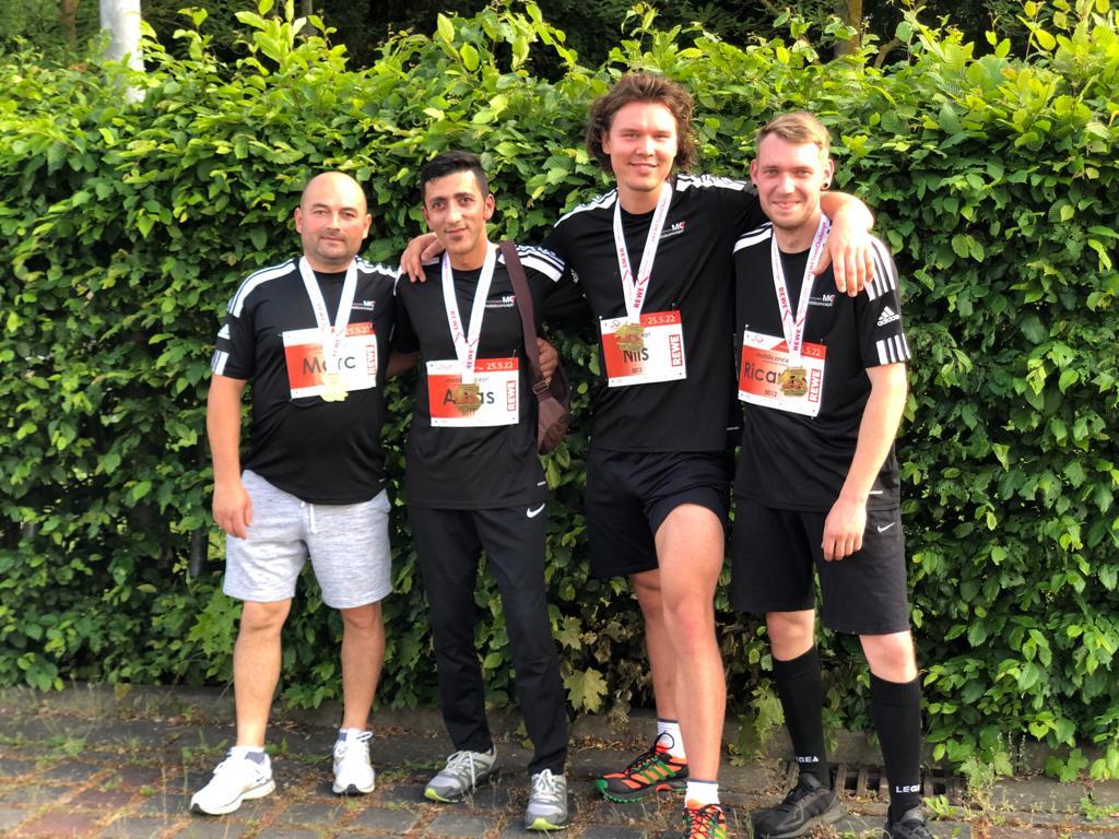 Am 25. Mai 2022 haben wir wieder an der REWE Team Challenge Dresden teilgenommen. Goran, Anas, Nils und Ricardo (v.l.n.r) waren summiert 1:44:07 h unterwegs und haben jeweils die 5km „abgerissen“. Wir sind stolz auf unsere Renner und freuen uns auf den nächsten Teamlauf.